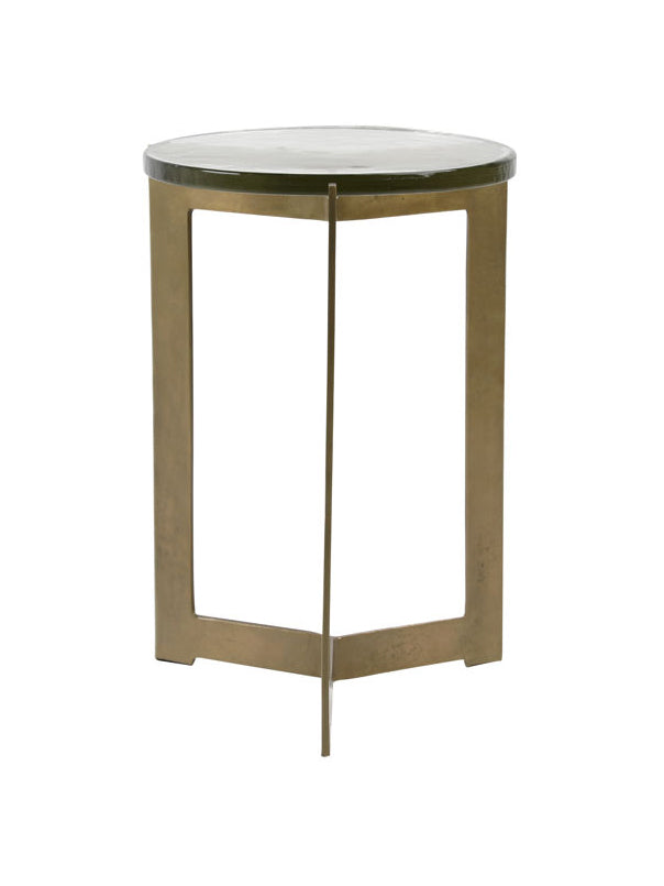 Classique, élégant, intemporel. La table de bout Aida est un incontournable de notre atelier. Fabriqué de manière experte en aluminium avec un plateau en verre, doté d'une finition en laiton antique pour une touche d'allure contemporaine. Parfaite pour les petits espaces ou comme table basse entre des chaises d'appoint, cette table peut répondre à une variété de besoins en matière de décoration intérieure.