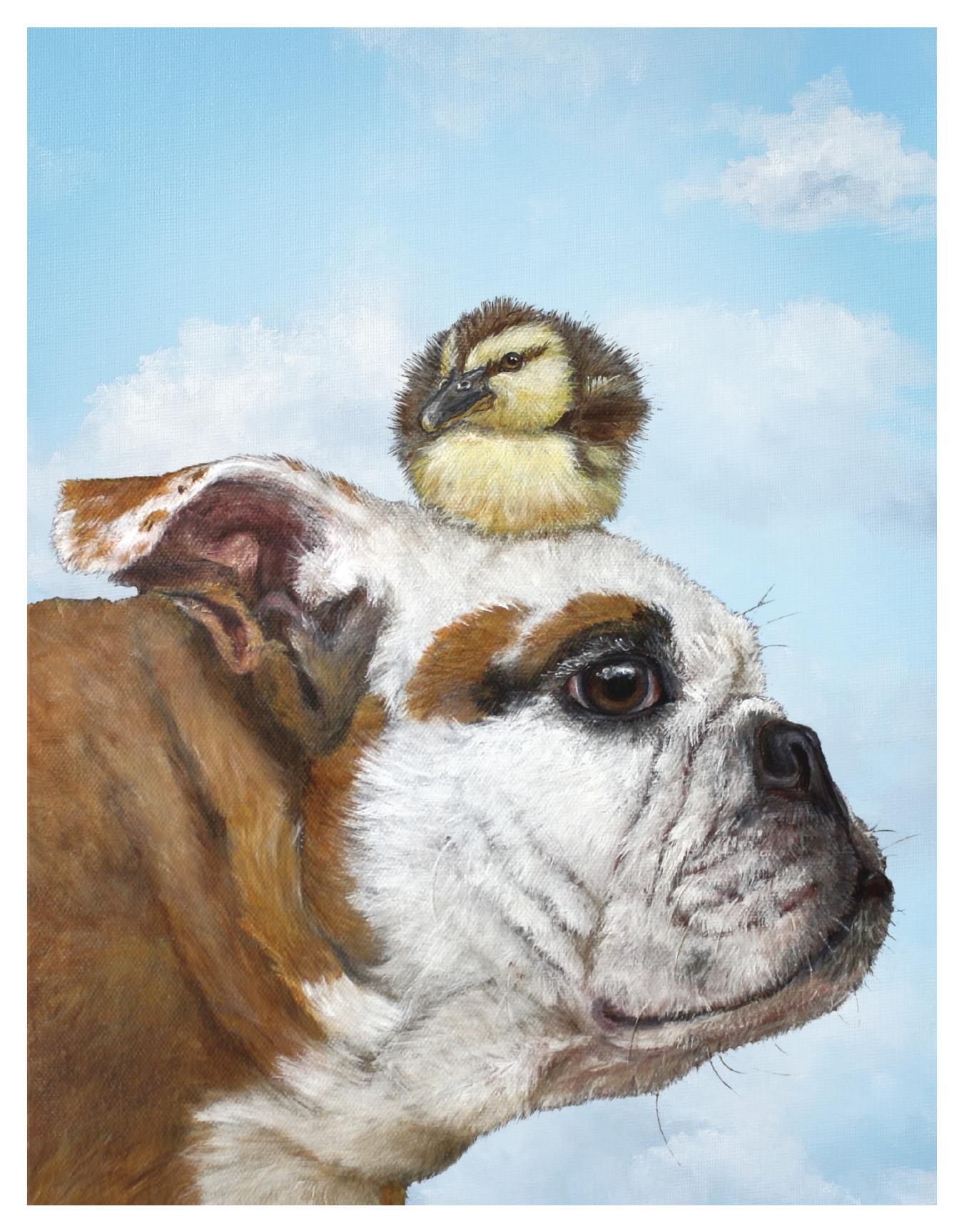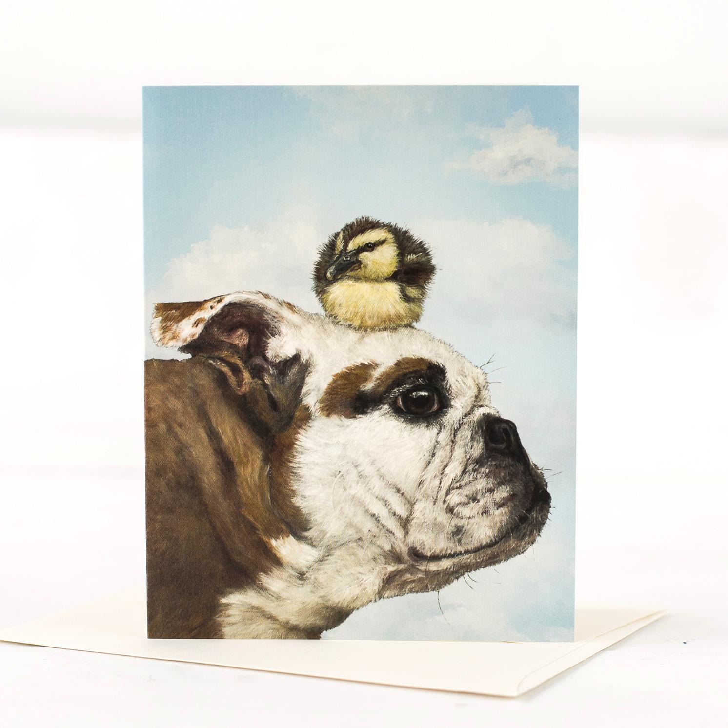 Bulldog + Caneton Carte de vœux