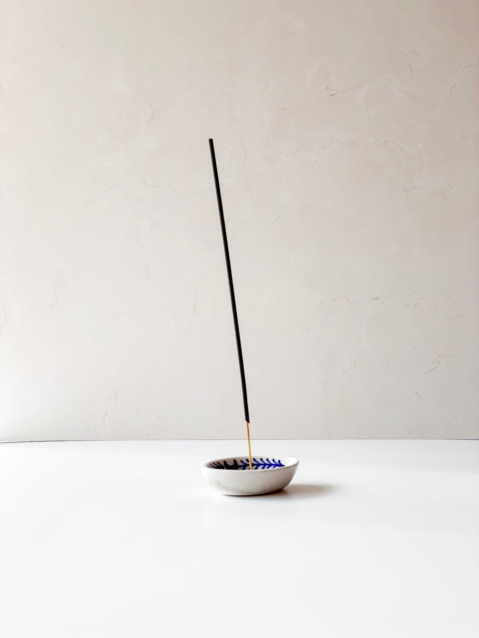 Perfectly sized for a desk, altar, or bath-time self-care ritual, this compact incense burner includes a single hole for your favorite incense sticks. Its travel-friendly design makes it an ideal companion for on-the-go relaxation. It also makes a thoughtful gift for any incense aficionado, especially when paired with a candle or mug in a larger self-care set. Infuse your routine with a touch of cultural elegance and protective charm with this stunning piece.