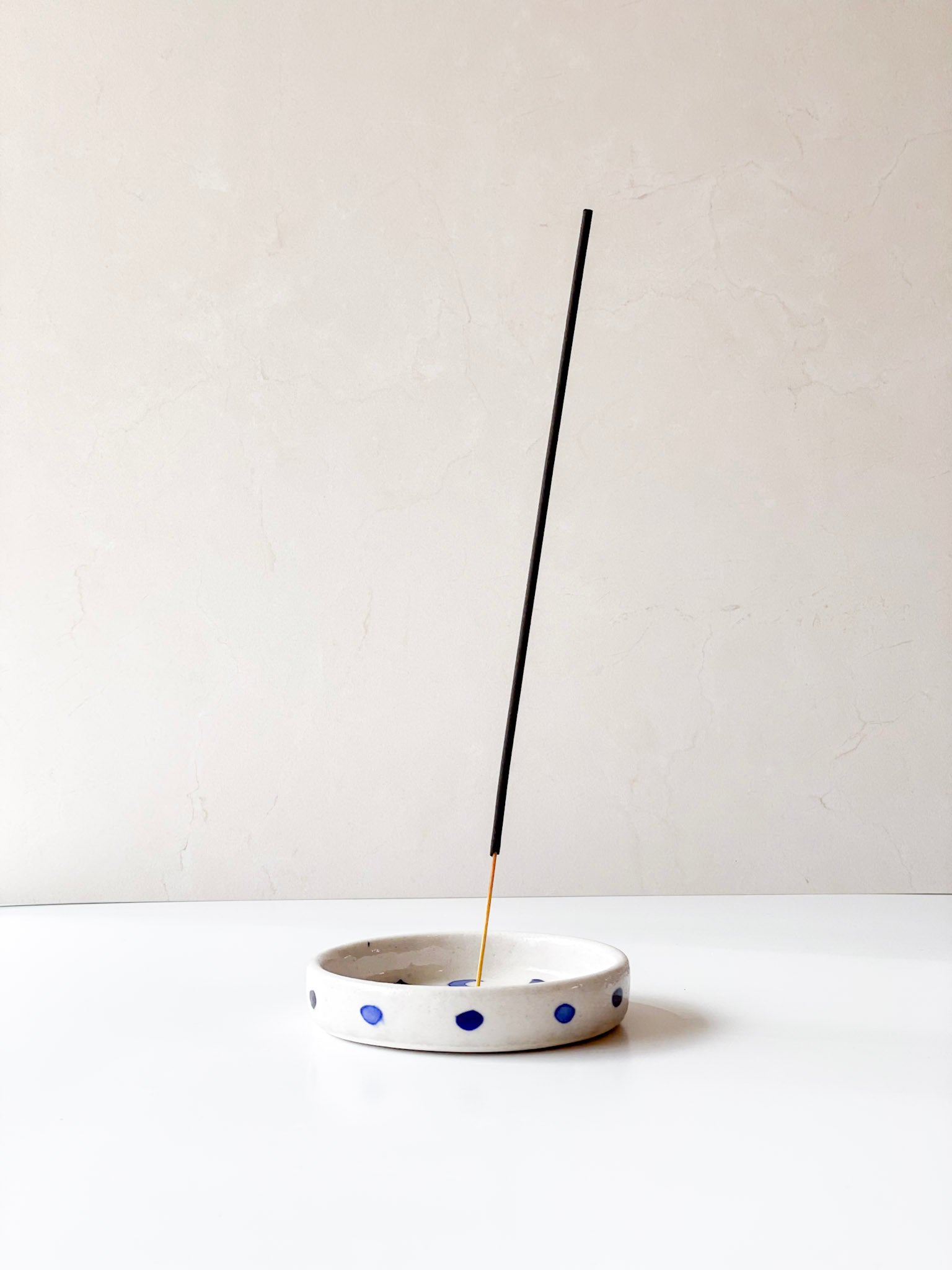 Featuring a single hole for your incense stick, this round holder is perfect for enhancing your yoga practice or self-care rituals. The classic blue and white color scheme effortlessly complements a variety of aesthetics, making it a versatile choice for any decor. Elevate your moments of relaxation with the serene beauty of this handcrafted masterpiece.
