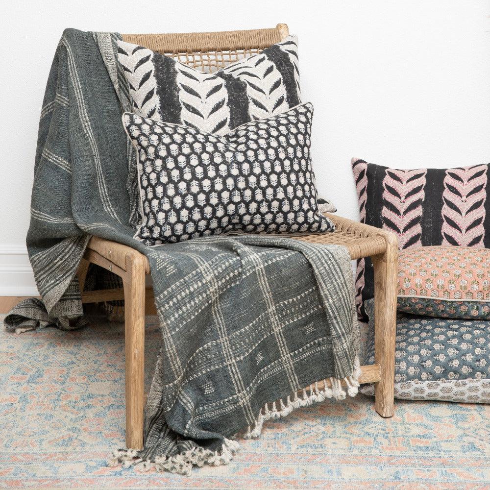 A staple in our shop and designs, the Claire Noir Throw Pillow is a gorgeous pillow to add to your bedding or living area. Crafted from 100% linen and hand-block printed, this pillow will add texture and warmth to your space. The gorgeous botanical motif is printed on both sides of the pillow, so it can effortlessly fit anywhere in your space.