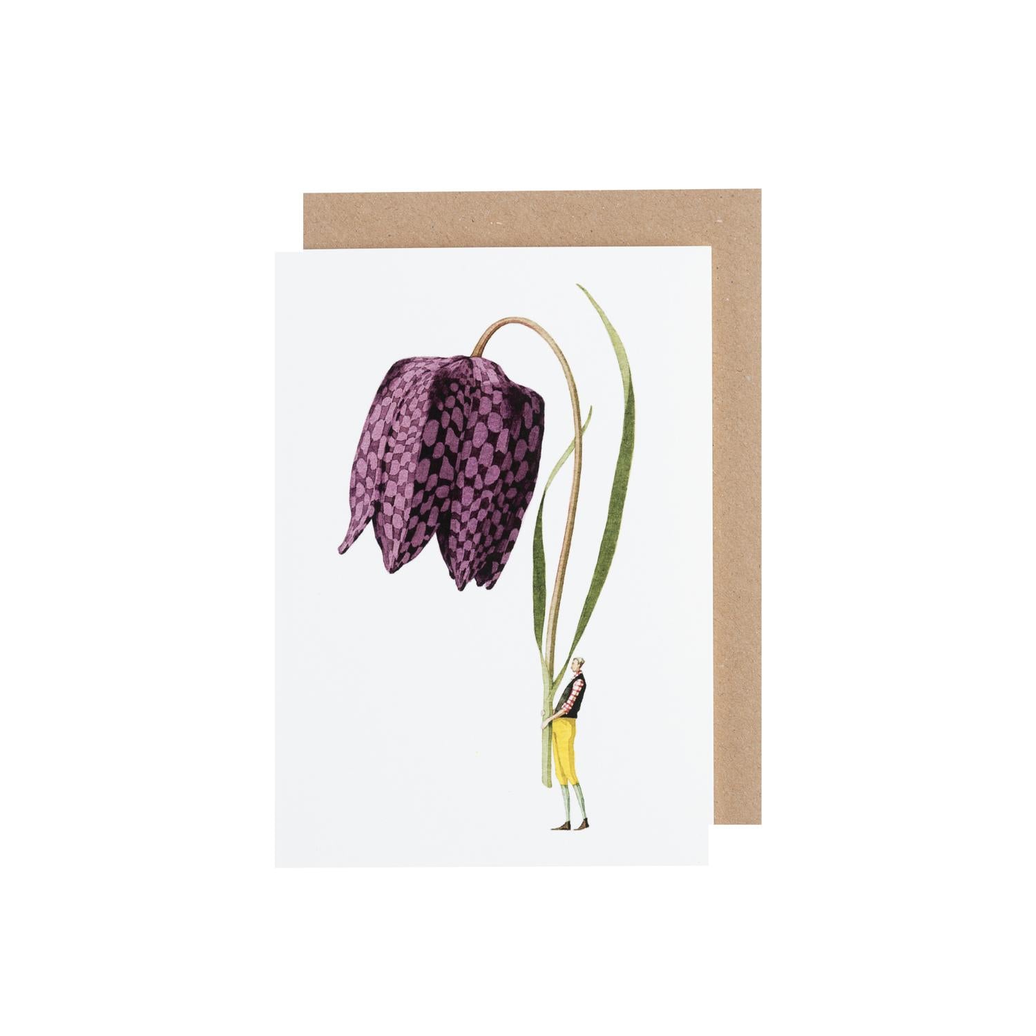 Part of Laura Stoddart's 'In Bloom' collection, this greeting card features the extraordinary over-sized flower and elegantly dressed figure that has become Laura’s trademark. Botanically accurate and beautifully painted, this alluring fritillary flower makes for a perfect everyday greeting card. Blank inside, you can write to your heart's content!