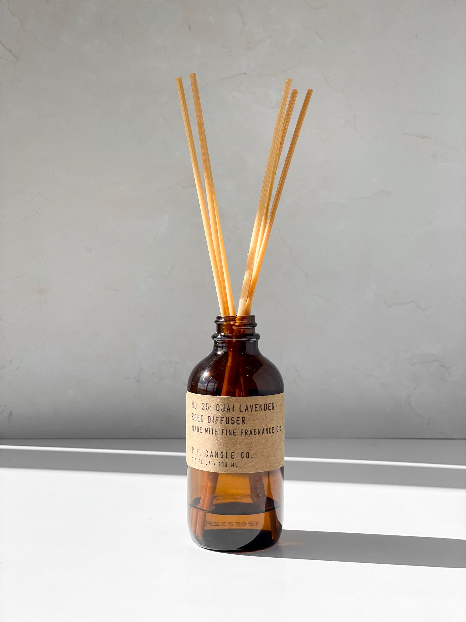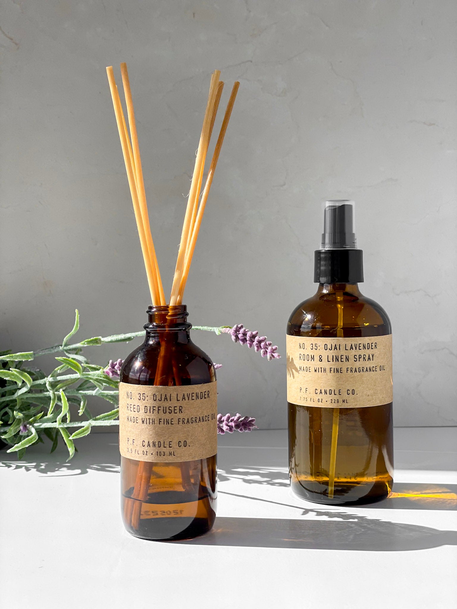 Elevate your space with the Ojai Lavender Reed Diffuser from P.F. Candle Co., a beautifully crafted addition that brings the calming essence of sun-drenched fields, orange groves, and lavender farms right into your home. Envision jagged mountains bathed in a rosy sunset glow as you enjoy the aromatic fusion of pixie tangerine, soothing blue lavender, and invigorating coyote mint.