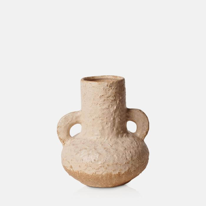 Featuring a handled silhouette and a graceful long neck, the Raffi Vase exudes understated elegance and refined craftsmanship. Whether adorned with a few faux flower stems or left to stand alone as a statement piece, it effortlessly captivates with its innate charm and presence.