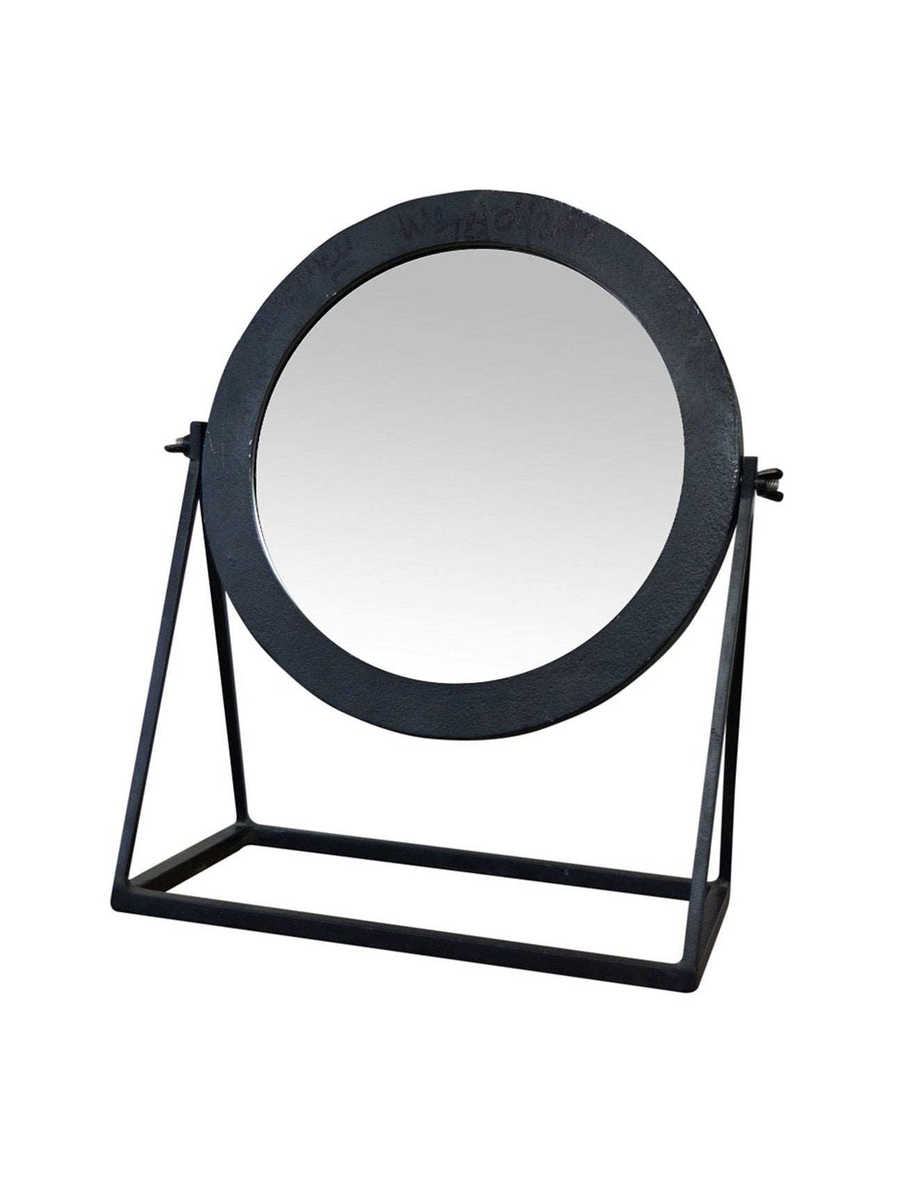 Add style and function to your vanity with this Round Table Mirror. This eye-catching table mirror helps you easily apply your makeup, fine-tune your eyebrows, and much more. The simple, classic design will fit easily into your space and dress up your bathroom counter or bedroom vanity.