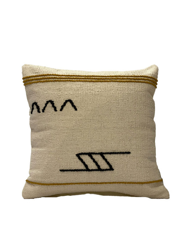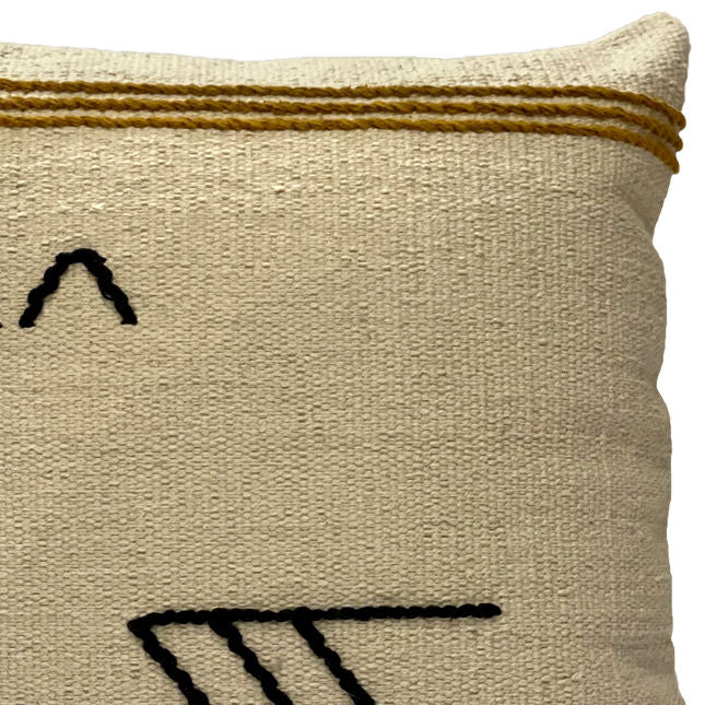 A simple pattern to elevate the style of any room. This 100% cotton, 20”x20” pillow features a warm beige color accented with clean black and brown designs. Unique and alluring, this throw pillow offers a blend of simplicity and beauty with its neutral color palette to create an inviting ambiance.